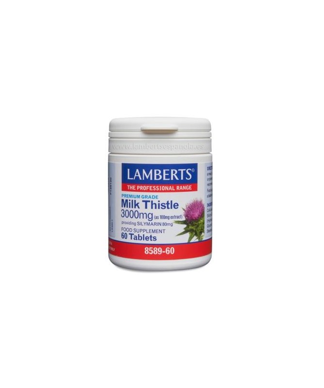 Cardo Mariano 3000mg. 60comp. (LAMBERTS)  Complemento alimenticio a base de cardo mariano. Apto para vegetarianos y veganos.
