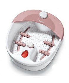 Baño de burbujas para pies con suave masaje vibratorio de las zonas reflexógenas del pie a través de accesorios de rodillos de masaje extraíbles. Ofrece la posibilidad de masaje en seco y agradables puntos de luz infrarroja. Accesorios para pedicura intercambiables. La bañera tiene plantillas de goma antideslizantes, protección contra salpicaduras y enrollamiento de cable.