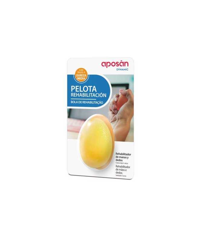 Aposán Dynamic Pelota Rehabilitación Dureza Media es un producto fabricado en gel que favorece la rehabilitación y ayuda a recuperar la movilidad de la mano y los dedos. Es una pelota ovalada de dureza media. Resistente a los impactos, es decir, recupera fácilmente su forma original durante el uso. Tras una lesión de la mano es recomendable hacer terapias para que esta se vaya adaptando poco a poco y recupere la movilidad y la habilidad de levantar objetos. Al mismo tiempo fortalece la musculatura. Mediante el uso continuo de esta pelota se mejora el movimiento en los dedos, la muñeca, la mano, los músculos de la mano y el antebrazo. Se realizan ejercicios sencillos mediante a los cuales se obtienen excelentes resultados. También relaja los músculos y reduce la tensión. Ayuda a mejorar el sistema nervioso y esto a su vez ayuda a liberar hormonas del estrés. Proporciona alivio duradero del dolor en las articulaciones ocasionadas por accidentes, golpes o fracturas. Minimiza el riesgo de padecer síndrome de túnel carpiano. El producto viene en formato de 1 unidad y está fabricado con materiales resistentes. Cumplen con el RD 1591/2009 de productos sanitarios. Es importante consultar su manual de instrucciones antes de utilizarlos y conocer sus posibles efectos secundarios y contraindicaciones.