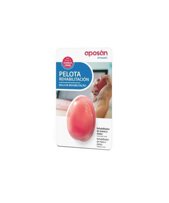 Aposán Dynamic Pelota Rehabilitación Dureza Firme tiene forma de óvalo y es de color rojo. Esta pelota de gel tiene una función terapéutica y forma parte de un grupo de pelotas de rehabilitación que se complementa con el óvalo verde y el naranja. Cada una de ellas tiene una característica distintiva; la verde es la más suave, le sigue la naranja con resistencia media y por último la roja, de alta resistencia. Es importante guardar la pelota correctamente una vez que deje de usarse, en un lugar fresco y seco y fuera del alcance de los niños.