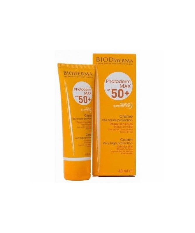 Bioderma Photoderm MAX Crema SPF 50+ UVA38 Tubo 40 ml se trata de una solución en crema dedicada al cuidado de las pieles normales, secas o muy secas, protegiéndola de los riesgos de daños celulares y que no se produzca en la piel el temido envejecimiento prematuro. Su textura es en crema bastante ligera, por lo que se absorbe rápidamente sin dejar un efecto graso.