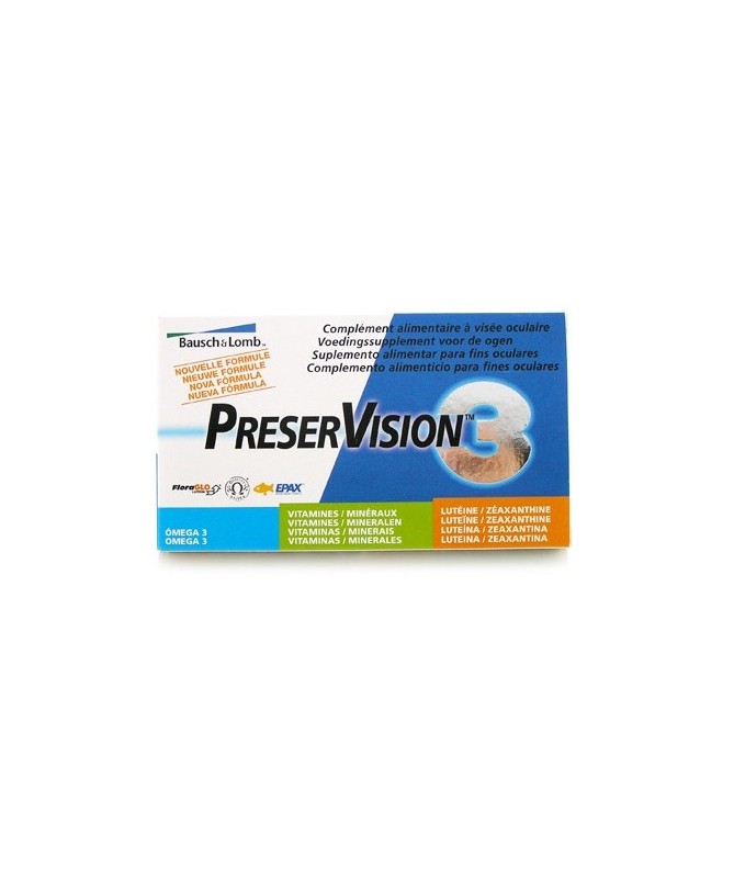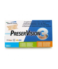 Preservisión 3 60 Cápsulas es un complemento alimenticio vitamínico basado en la combinación de 3 tipos de nutrientes, generalmente encontrados en los alimentos, para ayudar a nuestra vista y a su mantenimiento, luchando contra el envejecimiento ocular.