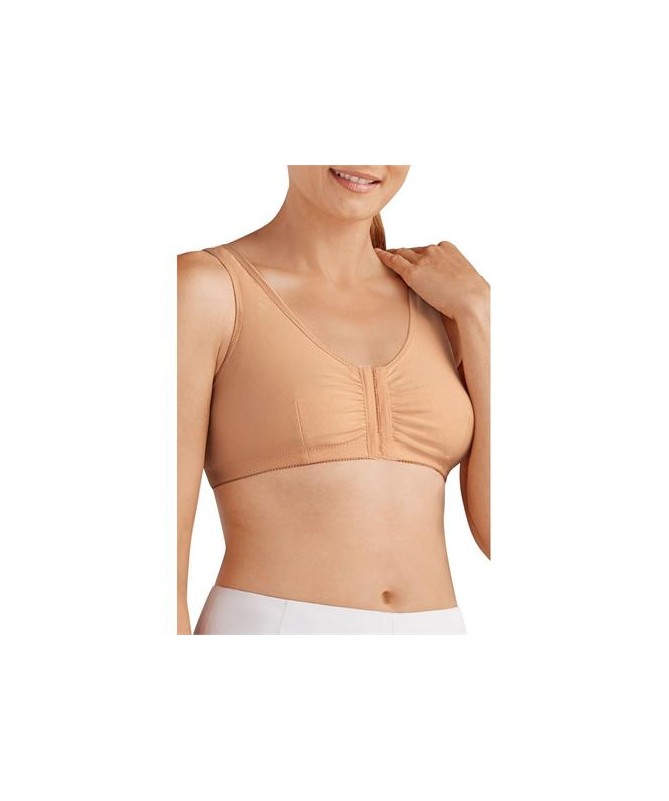 Amoena Frances es un sujetador suave y cómodo que se utiliza inmediatamente después de la cirugía. Cuenta con cierre frontal para facilitar su uso. El alto contenido de algodón y el bolsillo de algodón suave hacen que el sujetador sea cómodo para pieles sensibles. Los bolsillos de algodón sostienen una preforma o una forma de ocio de forma segura en su lugar. Además, se puede utilizar como sujetador para dormir. Compuesto en 90% algodón y 10% elastano.