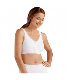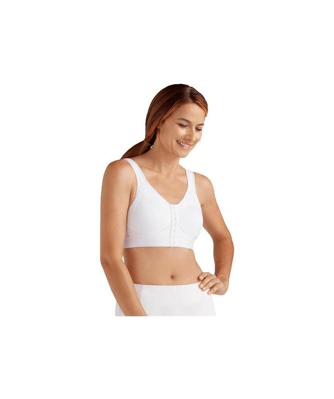 El sujetador posquirúrgico o Deportivo Amoena Ester presenta un cierre frontal de gancho y ojo que hace que sea fácil de poner y quitar cuando la movilidad es limitada. Tiene bolsillos de algodón transpirable con copas moldeadas que son suaves y sin costuras debajo de la ropa.