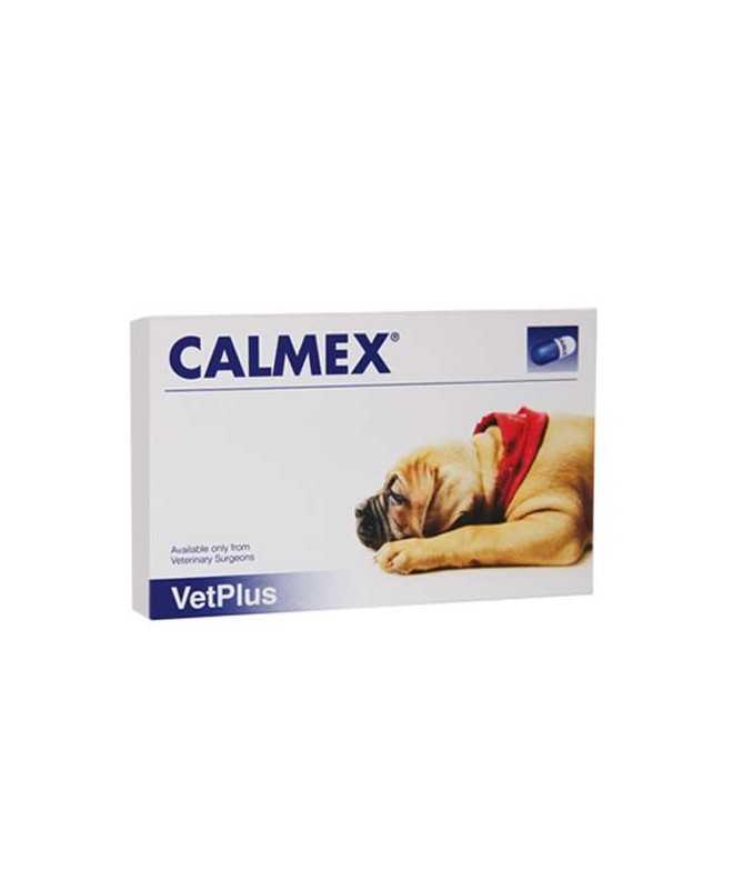 Calmex esta elaborado con teanina, triptófano, vitaminas del grup B y methisticum, calmantes naturales y está indicado para el tratamiento del estres y la ansiedad producidos por entornos ruidosos, petardos, fuegos artificiales, fiestas ruidosas, cambios en el estilo de vida, mudanzas, visitas, nuevos miembros en la familia, viajes o visitas al veterinario, desplazamientos poco habituales o en momentos de convalescencia, postoperatorio donde el animal necesita descanso para recuperarse.