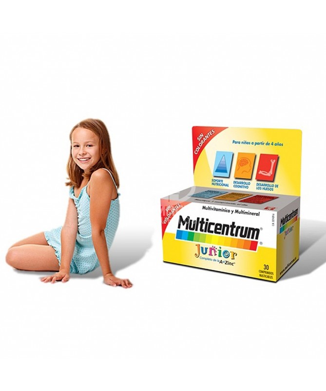 El complemento vitamínico Multicentrum Junior está indicado para favorecer las necesidades nutricionales y vitamínicas de adolescentes de 4 a 12 años, cuando su desarrollo y crecimiento toman mayor importancia. Los ayuda con el rendimiento intelectual y físico, además de mantener las defensas preparadas y fuertes para los cambios bruscos de temperatura. Sabor frambuesa.