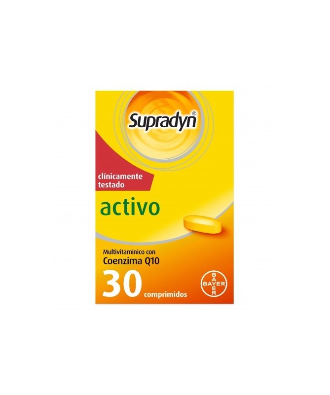 Supradyn Activo Comprimidos activa tu energía y vitalidad. Supradyn Activo Comprimidos es una nueva generación de polivitamínicos con minerales que complementando tu dieta habitual, ayuda a activar y mantener tu energía y vitalidad durante todo el día. Contiene Coenzima Q10, un componente innovador y natural en nuestro organismo.