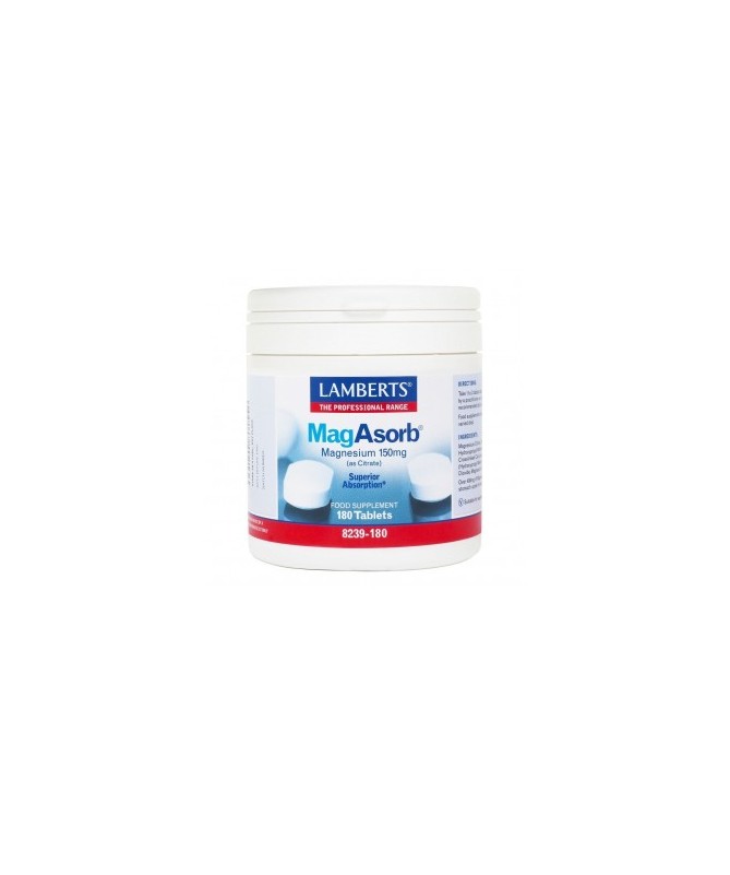 MagAsorb de Lamberts proporciona magnesio altamente biodisponible en forma de citrato, ya que es la forma que se absorbe de forma más fácil por nuestro organismo y que dispone de abundantes estudios científicos que apoyan su uso.