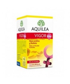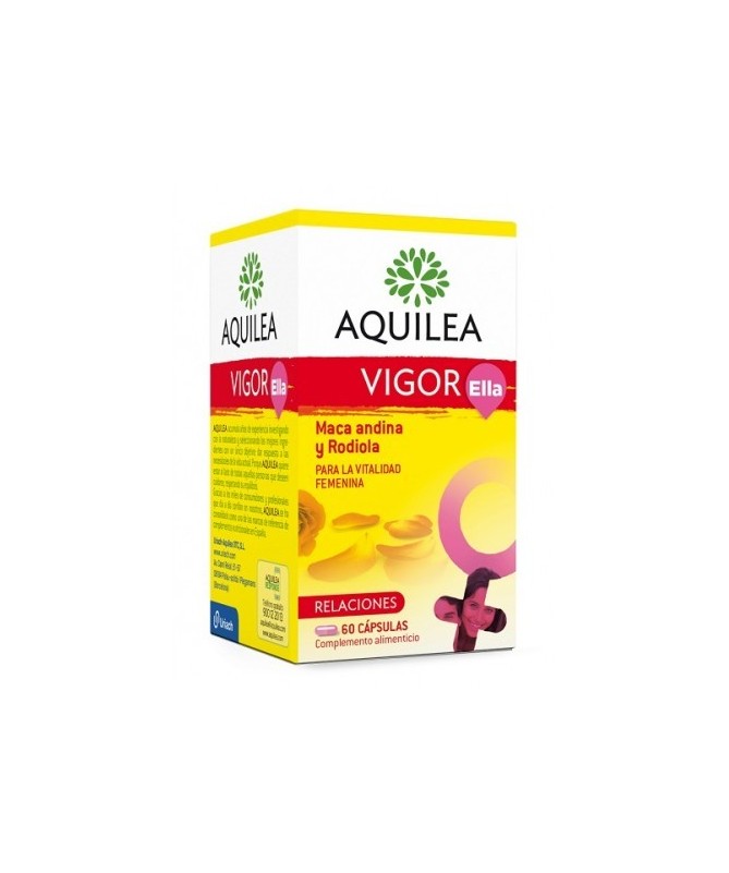 Aquilea Vigor Ella es un complemento alimenticio con Maca, Ginkgo y Rodiola que fortalece y ayuda a dar vitalidad a la mujer, cuando sufren de sobrecarga emocional, estrés, cansancio físico o fatiga. Sobre todo es necesario tomarlo cuando el ritmo de vida de la mujer es muy activo.