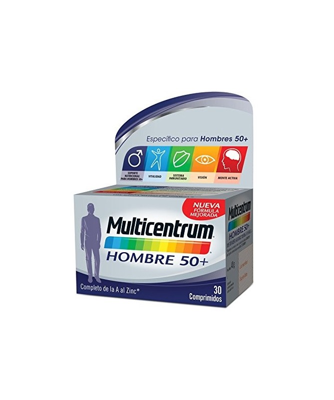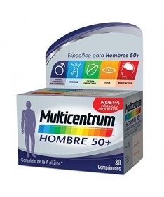 Multicentrum Hombre es un multivitamínico y multimineral formulado especialmente para hombres, con cantidades reforzadas de vitaminas y minerales específicos que ayudan a satisfacer las necesidades nutricionales.