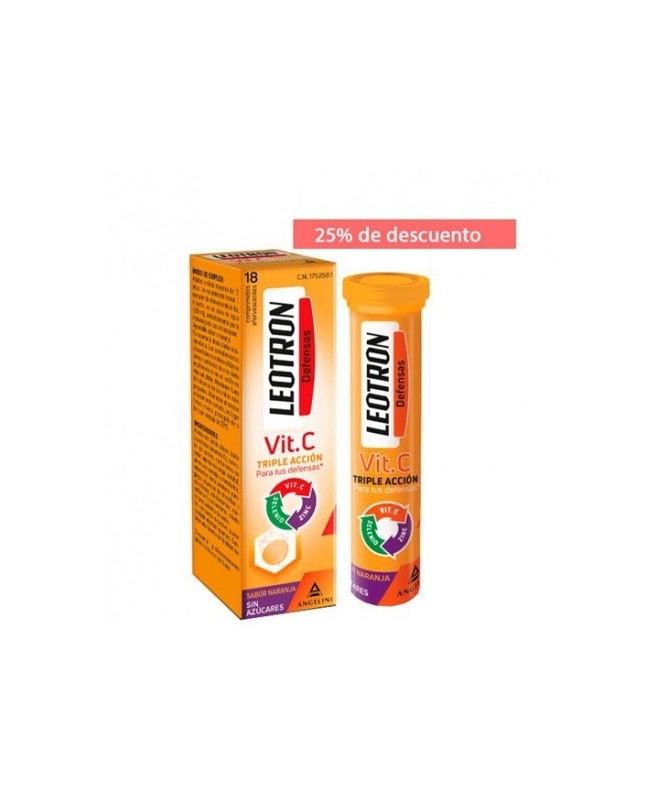 Leotron Vitamina C 18 comprimidos efervescentes ejerce una triple acción que ayuda a tus defensas.