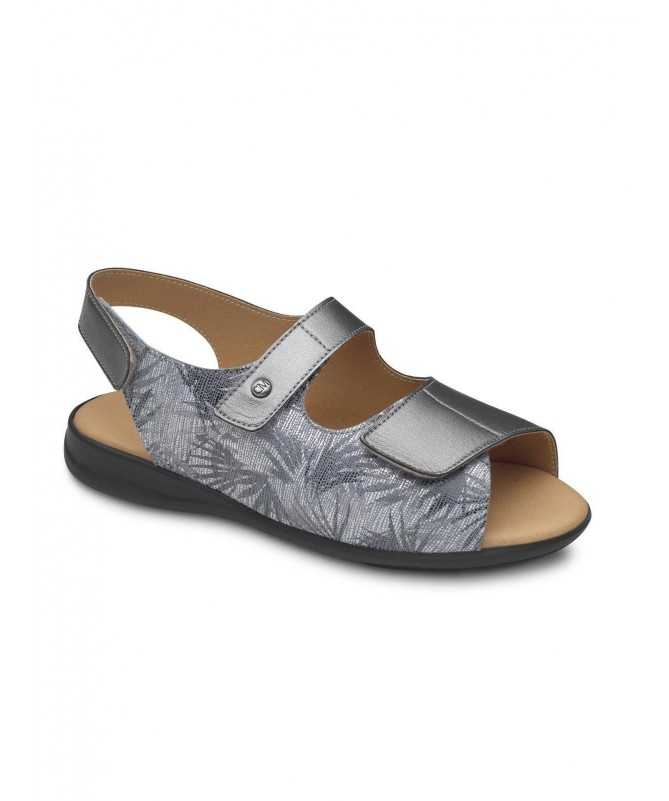Sandalias con cierre regulable de triple velcro, uno en pala, otro en talón posterior y otro en tobillo, con gran apertura y capacidad. Dispone de plantilla de gel de gran amortiguación y suavidad forrada en piel natural.